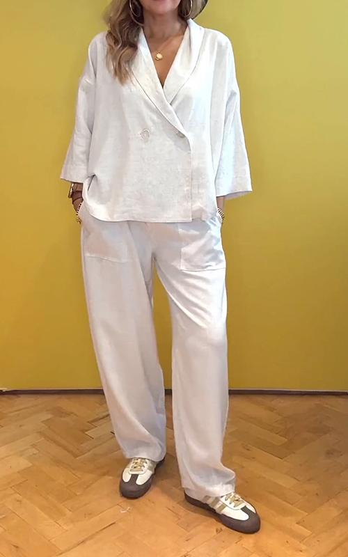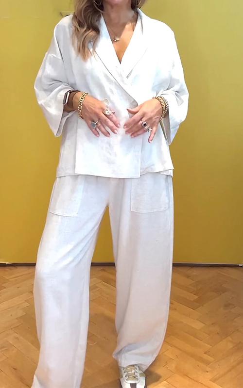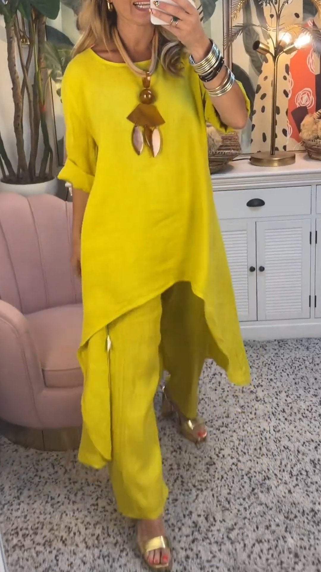 🔥OSTATNIE DNI WYPRZEDAŻ 50%🔥Dwuczęściowy garnitur z bawełny i lnu, z okrągłym dekoltem i długim rękawem145,00 zł PLNDescribe your product -