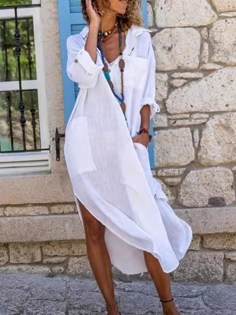 Damska długa sukienka koszulowa z bawełny i lnu, na co dzień135,00 zł PLNDescribe your product -
