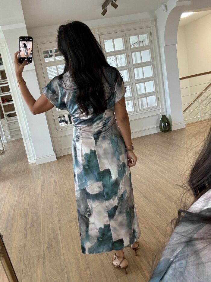 olla niebiesko-zielona sukienka z batikowym wzorem, drapowana z boku, satynowa130,00 zł PLNDescribe your product -