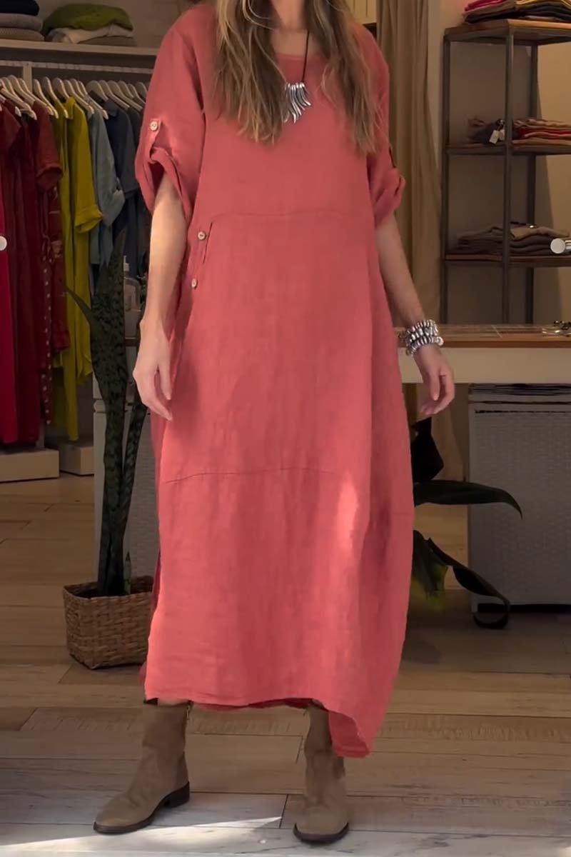 Damska Wygodna wiosenno-letnia bawełniana i lniana sukienka z dekoltem w kształcie litery V w jednolitym kolorze138,00 zł PLNDescribe your product -