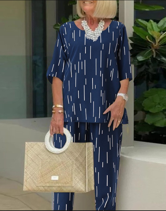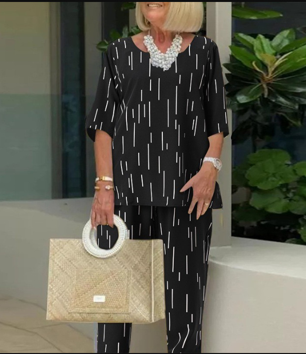💥🔥[Top + Spodnie]2025, wiosna i lato, nowa moda, okrągły dekolt, rękaw pięć czwartych, luźny dwucz