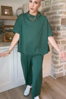 - Wygodny materiał: Zaprojektowany z miękkiego i oddychającego materiału, o luźnym, swobodnym kroju ze spodniami z szerokimi nogawkami.