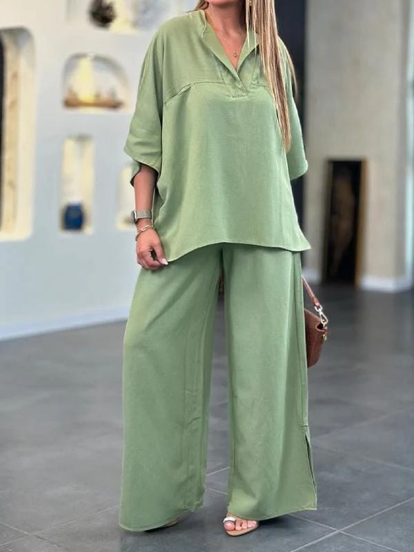 Lekki i oddychający. Spodnie damskie, elastyczne spodnie z wysokim stanem i szerokimi nogawkami do kostek z funkcjonalnymi kieszeniami, ten zestaw jest chłodny i jedwabisty, zapewniając maksymalny komfort podczas gorących, letnich dni. Luźna koszula z krótkim rękawem i spodnie z szerokimi nogawkami zapewniają swobodę ruchu i swobodny krój.