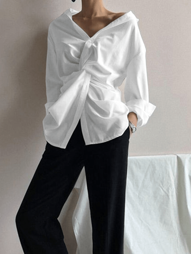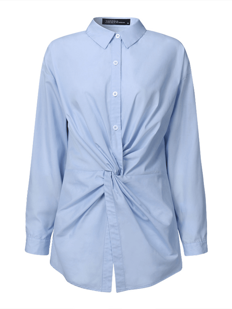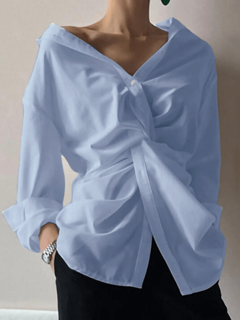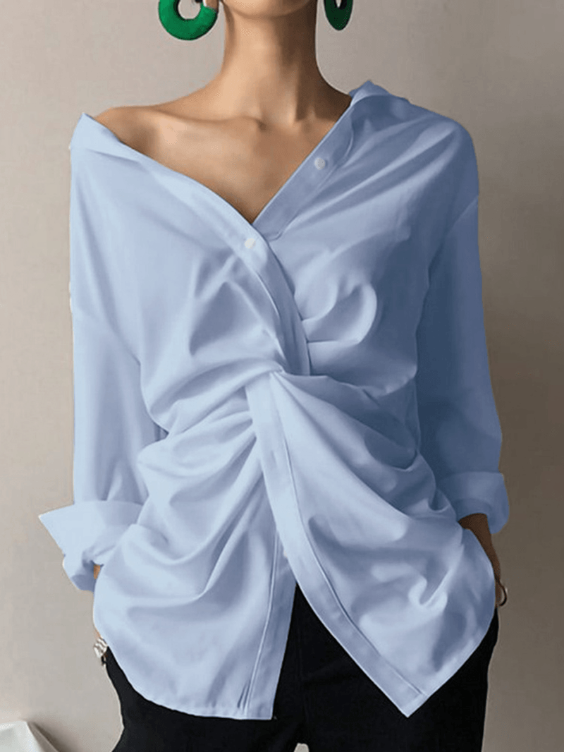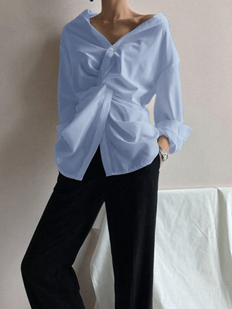 Damska koszula z długim rękawem i golfem w jednolitym kolorze