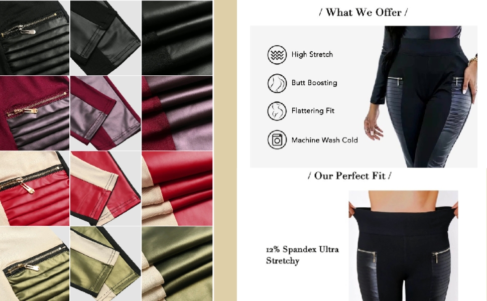 Spodnie ze sztucznej skóry z zamkami błyskawicznymi i kontrastowymi panelami nigdy nie były tak łatwe w noszeniu i nigdy nie czuły się tak dobrze!