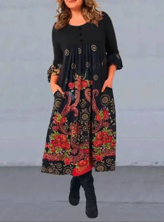 [S-5XL]👗Nowa, jesienna i zimowa sukienka codzienna z długimi rękawami i wzorem w stylu retro