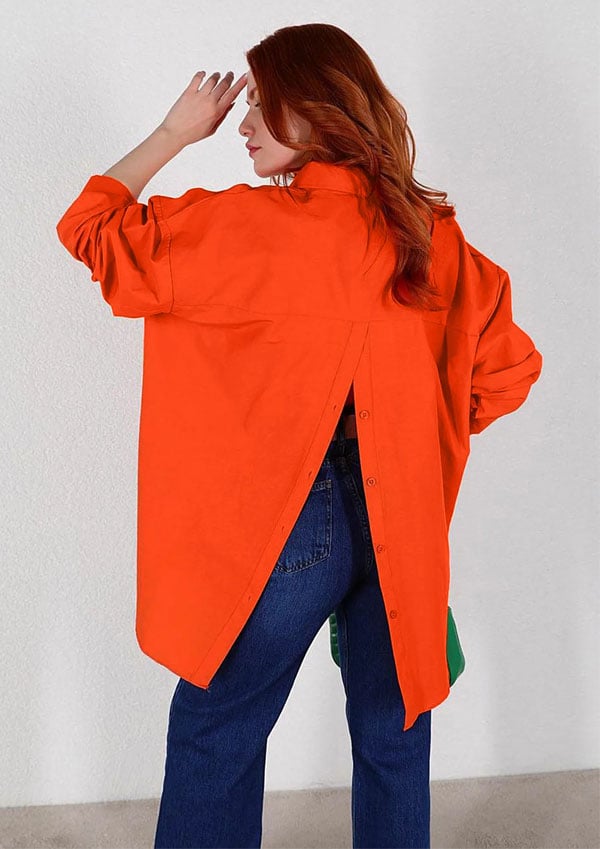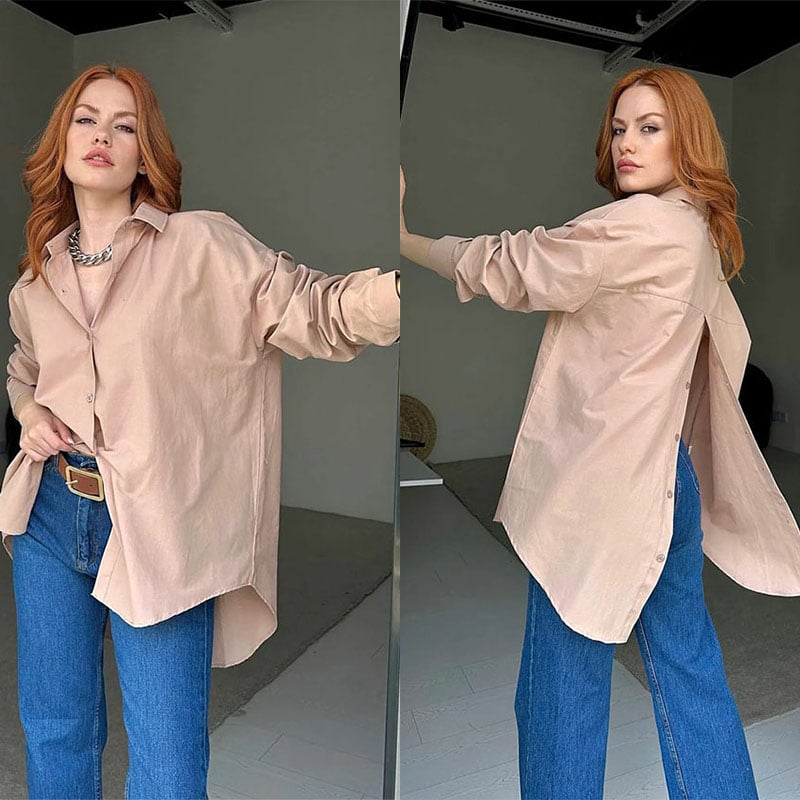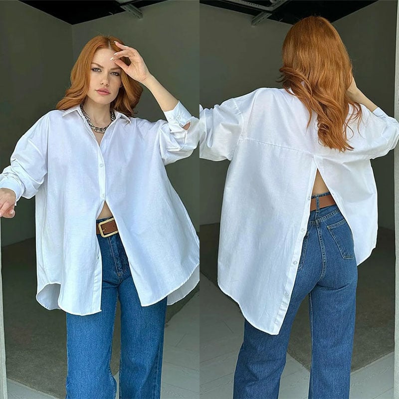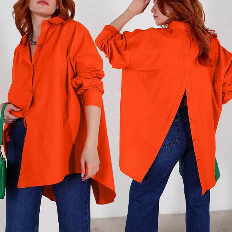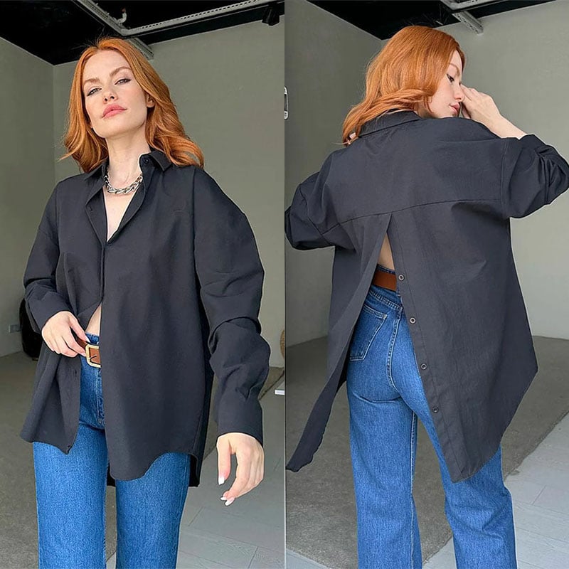 🔥Zabijaj stylowo dzięki naszej koszuli z długim rękawem! Rozcięcie z tyłu i luźny krój dodadzą Twojemu codzienności odrobiny uwodzenia. Zapnij guziki i zawładnij pokojem! 😉✨