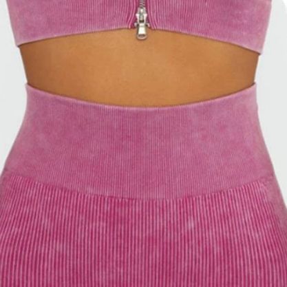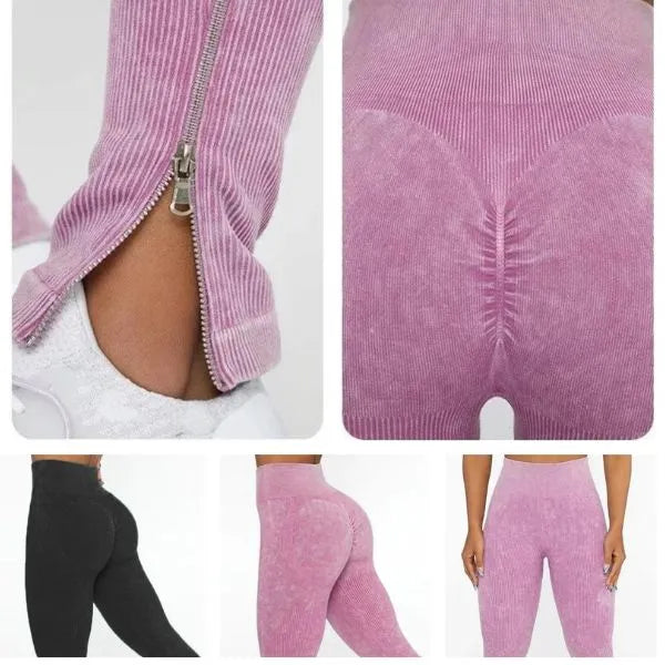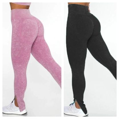 Posiadają prążkowane detale wokół górnej części uda i talii, które zapewniają pochlebną kompresję. Zaprojektowane z marszczonymi detalami, aby nadać bardziej zgrabny wygląd, są niezbędne w kolekcji bezszwowych legginsów.