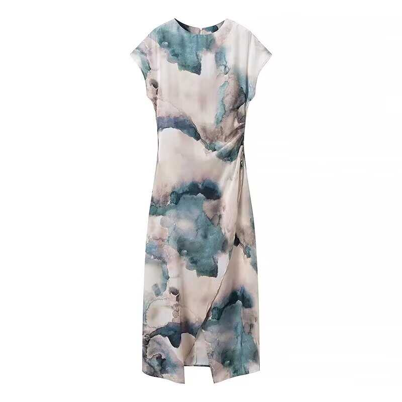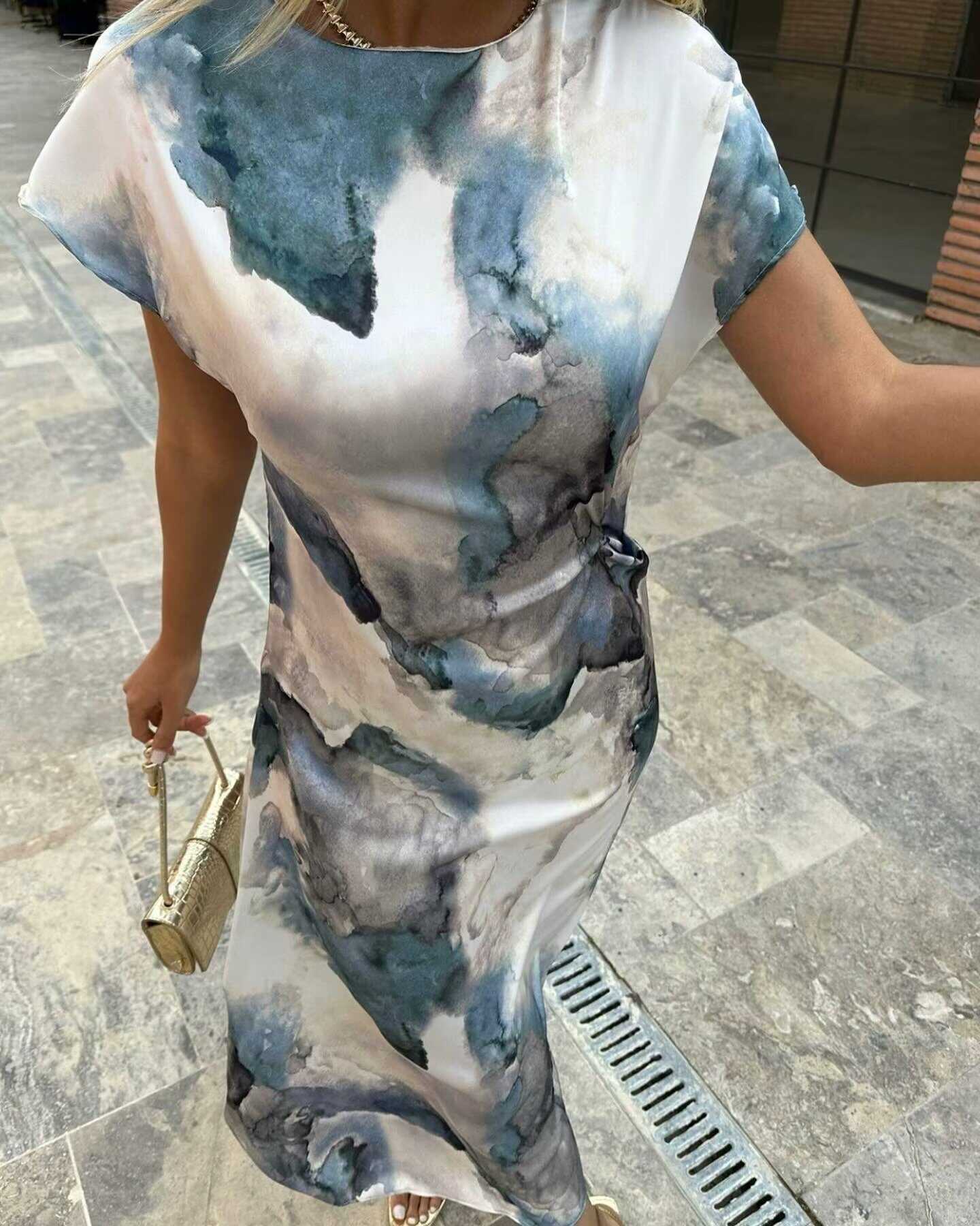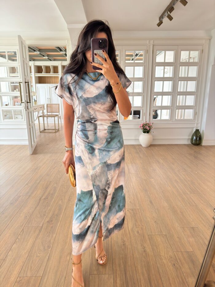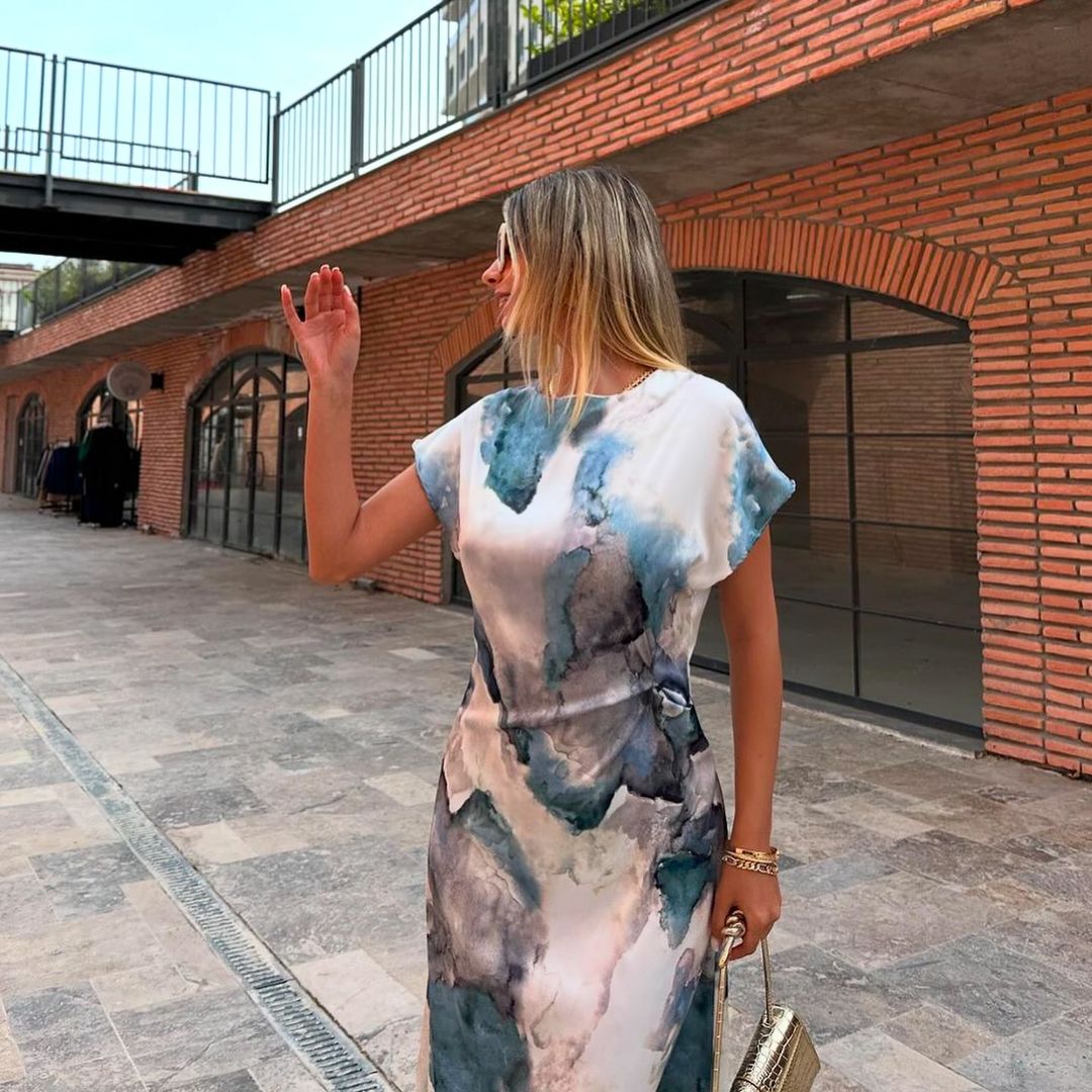 Uwolnij w sobie duszę fashionistki dzięki naszej satynowej sukience midi z nadrukiem. Ta wszechstronna sukienka ma okrągły dekolt i krótkie rękawy, idealna na każdą okazję. Luksusowa satynowa tkanina dodaje elegancji, a długość midi i kopertowy wygląd dodają jej uroku sylwetka. Wyraź siebie dzięki przyciągającemu wzrok nadrukowi. Podnieś swój styl już dziś!😍