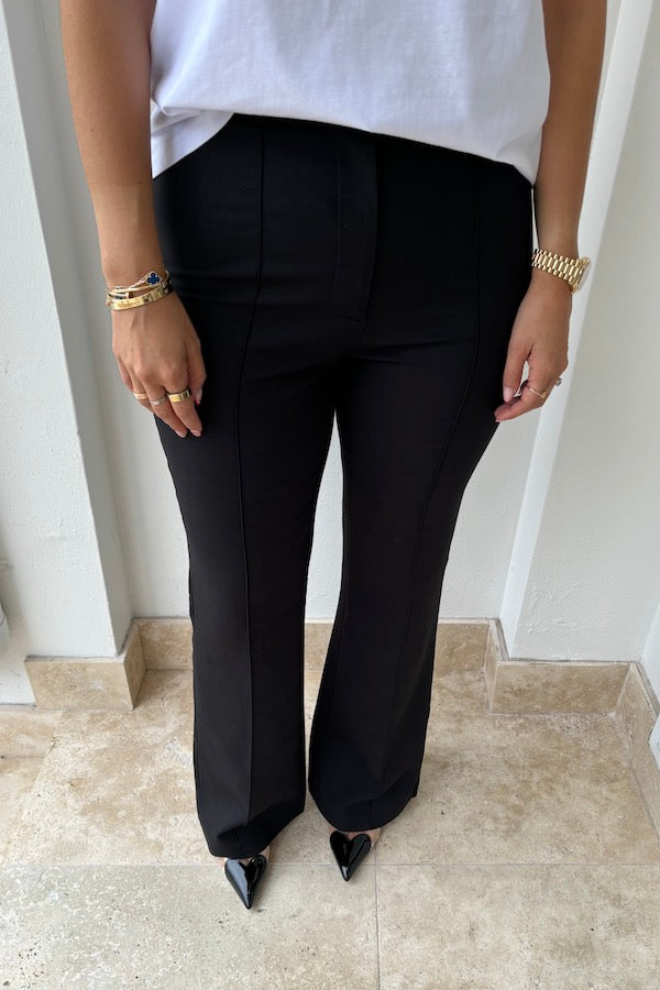 Przygotuj się na poprawę swojego stylu dzięki spodniom Tailored. Te czarne spodnie mają zwiewny krój, który podkreśla sylwetkę, a gruba pętelka w talii dodaje im wyrafinowania. Zamek błyskawiczny z guzikami z przodu dodaje stylowego wykończenia, a lekki rozciągliwy materiał zapewnia wygodne dopasowanie. Idealny na każdą okazję. Połącz go z naszymi koszulkami Sneaky Link na jedno ramię.